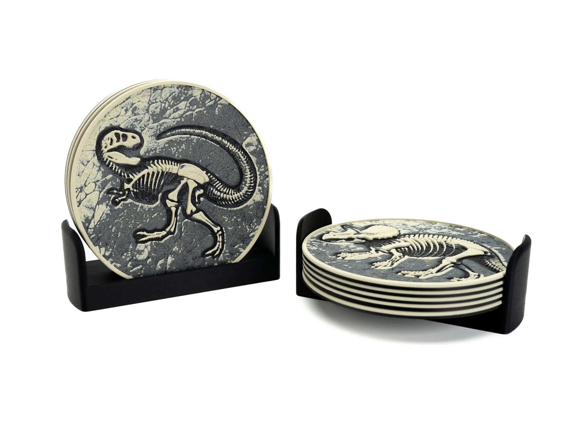 A stylish set of prehistoric coasters. Set of six.
